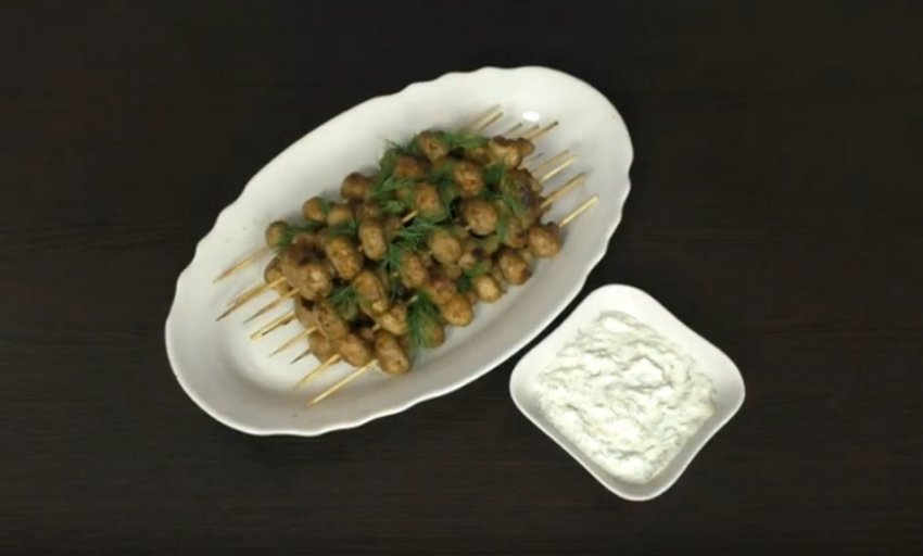 Гриби слід нанизати на шпажки і викласти на деко, вкрите пергаментом або у форму для випікання. У розігріту до +200°С духовку необхідно помістити грибні шашлики. Запікати закуску слід протягом 20 хвилин. Готову закуску на шпажках рекомендується подавати до столу разом із соусом.![]()