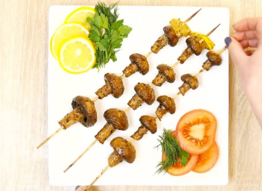 Таким чином, шашлик із печериць, приготований у духовці - це проста, недорога, швидка, а також дуже смачна закуска, яку можна подавати як у гарячому, так і в холодному вигляді. Завдяки різним маринадам, гриби будуть дуже соковитими та ароматними.
