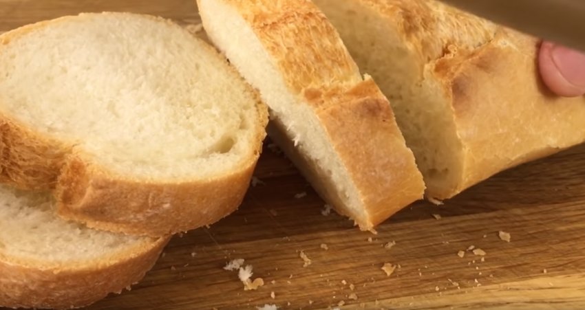 Весь багет необхідно нарізати кільцями, потім розрізаючи кожне навпіл.![]()