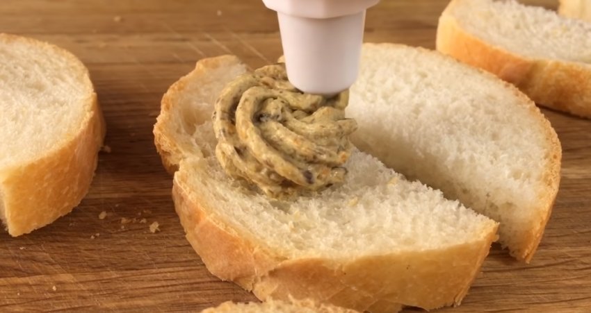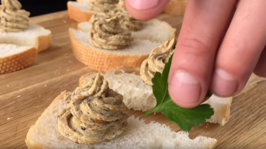 Акуратно викласти грибний паштет на шматки хліба.![]()
