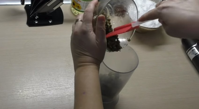 Вміст ретельно подрібнити за допомогою техніки.![]()