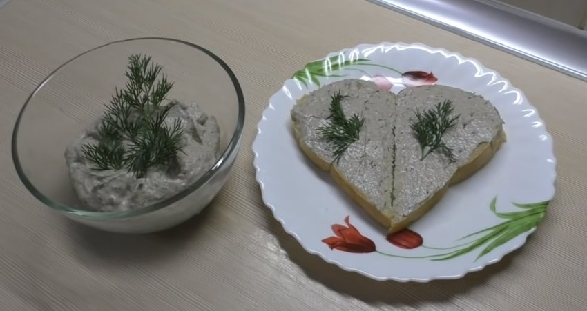 Для подачі взяти білий хліб, порізати його, а потім намазати готовим паштетом і прикрасити гілочкою кропу.![]()