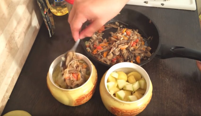 Рецепт приготування картоплі з грибами в горщику в духовці