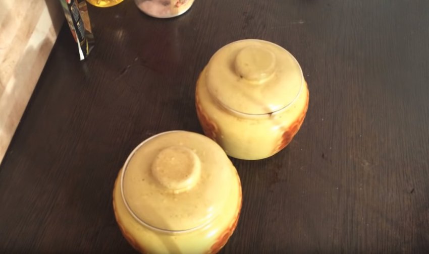 Обов'язково розігріти духовку до 200° і відправте туди горщики. Час приготування 40 хвилин.![]()