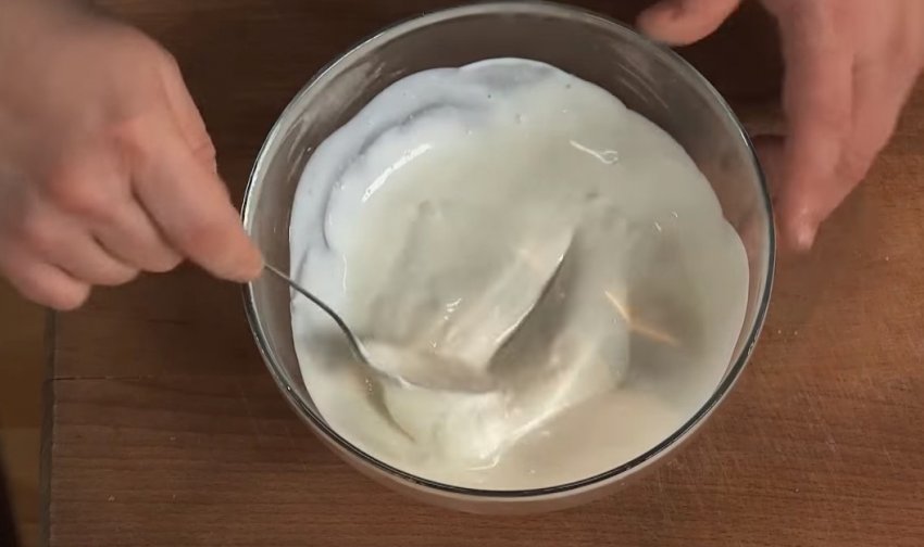 Візьміть миску і відправте туди подрібнений часник, сметану, вершки і трохи солі. Вимішайте до однорідності. Білий сметано-часниковий соус готовий.![]()