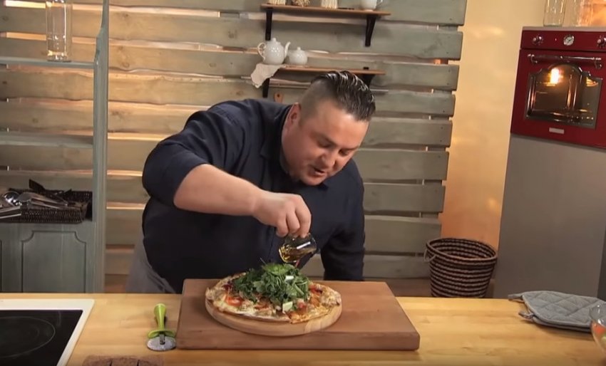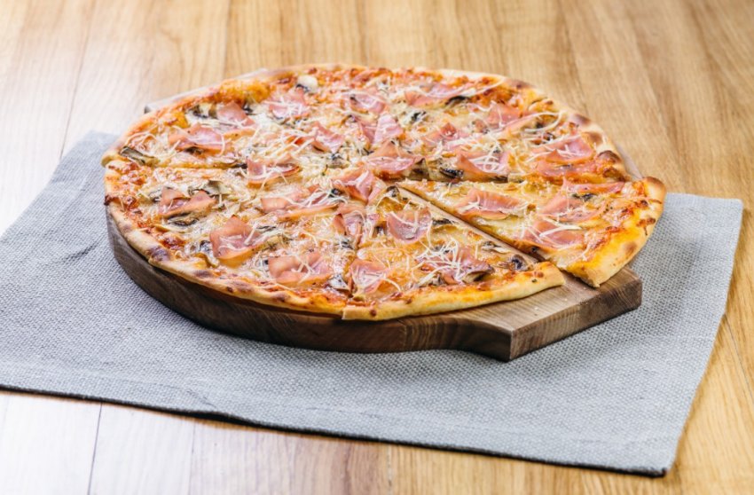 - Подавати страву до столу потрібно відразу ж після випічки. Викладіть піцу на спеціальну круглу дерев'яну дошку або тарілку і наріжте порційними шматками. Приємного апетиту!