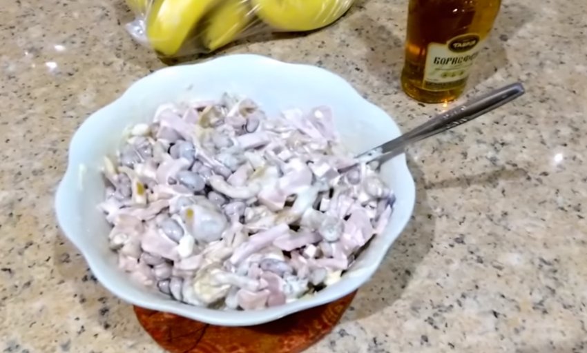 - Заправити майонезом, перемішати.