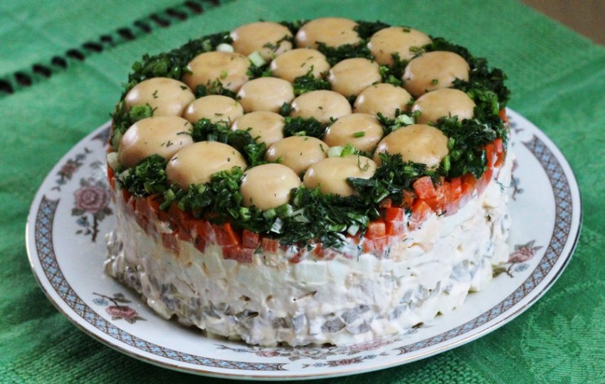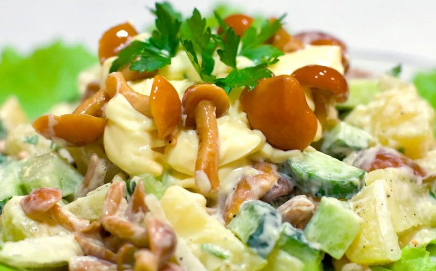 Усі люблять ароматні та смачні салати з грибами: їх швидко та приємно готувати, а святкова подача може бути напрочуд оригінальною. Крім того, в таких стравах багато вітамінів та інших корисних речовин.