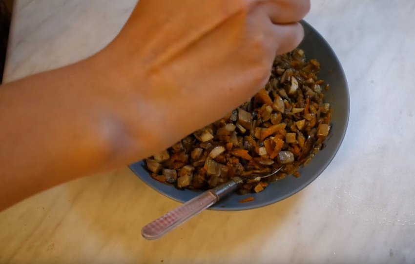 Подрібнити цибулю і натерти на дрібній тертці моркву. Помити і нарізати кубиками гриби.![]()