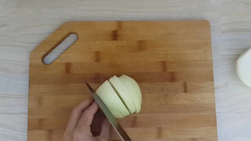 - Цибулю почистити, порізати півкільцями або кільцями.
