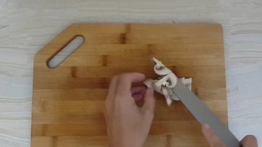- Гриби нарізати тонкими пластинами.