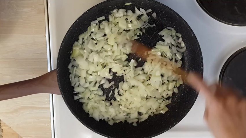Цибулю обсмажити в рослинній олії протягом 3-4 хвилин.![]()