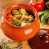 - Свинину або яловичину нарізати, покласти на дно горщика.