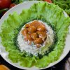 - Перед подачею прибрати верхній шар плівки, накрити страву плоскою тарілкою, перевернути, після чого обережно зняти плівку, що залишилася. Відразу подавати на стіл.