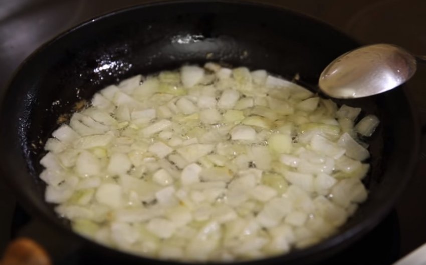 Цибулю порізати кільцями або кубиками. Посмажити.![]()