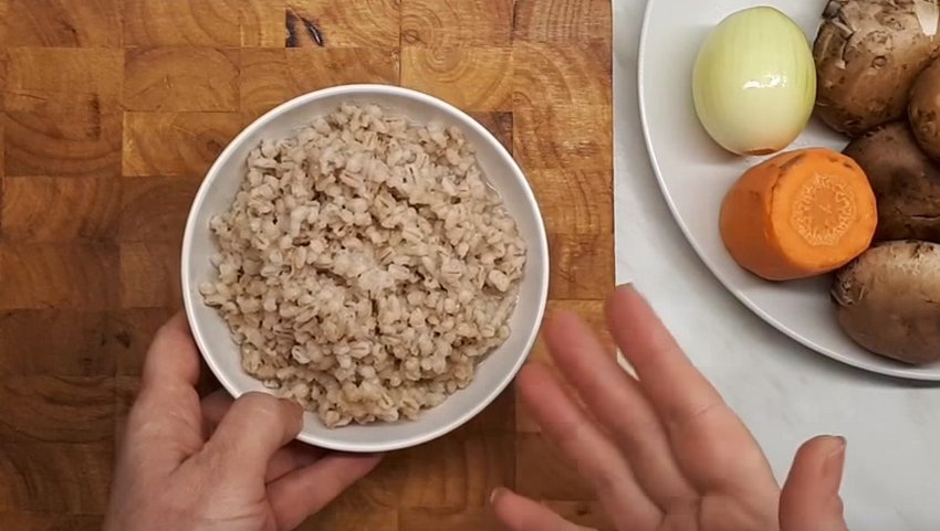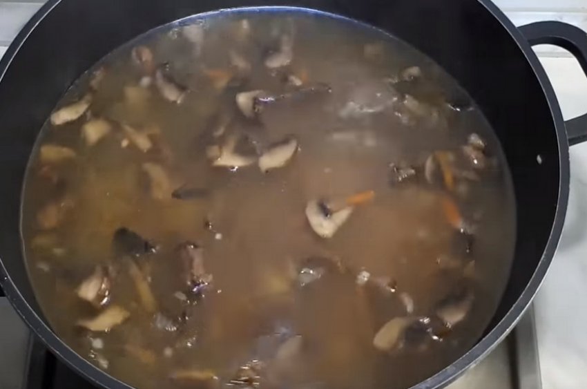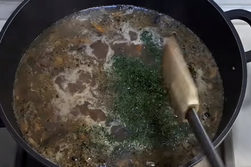 - У страву додати перловку, присолити та поперчити. Суп вважається готовим, якщо крупа стане м'якою.