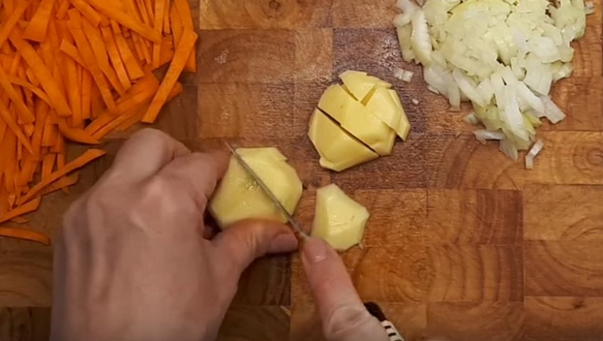 Картоплю нарізати довільно (невеликими брусками).![]()