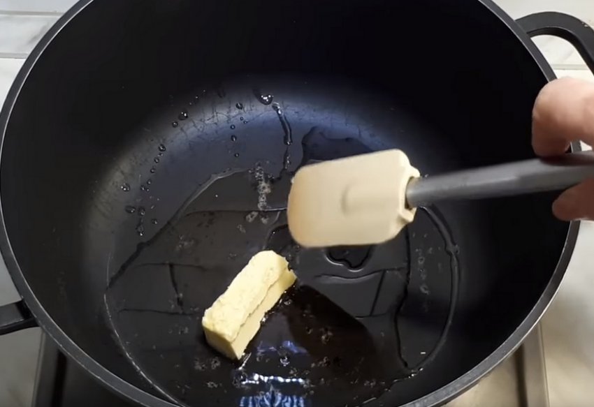 У сотейник влити рослинну олію і розтопити вершкове масло.![]()