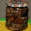 - Закип'ятити 1 л води і залити банку зі свинушками.