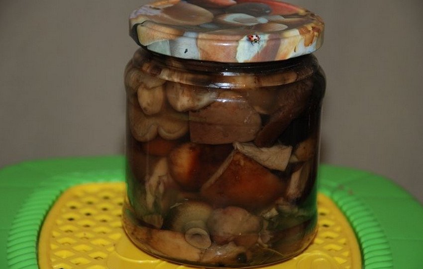У домашніх умовах заготовки зберігаються в холодному приміщенні без доступу прямих сонячних променів за температури не вище +5°С. Дотримання правил консервування та стерилізації робить мариновані гриби смачною і корисною стравою.