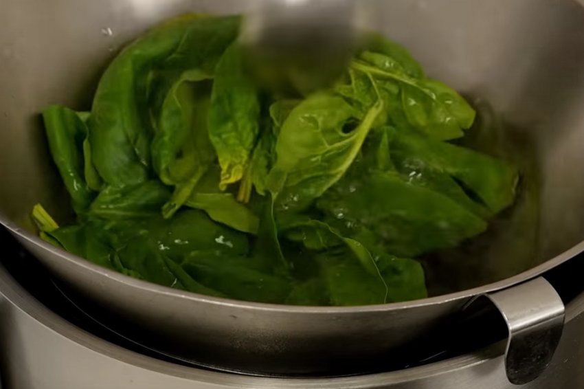 шпинат на пару. Коли охолоне, помістити його в прохолодну воду.![]()