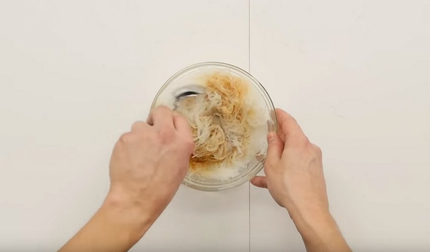 - Основний інгредієнт помістити в прохолодну воду для розм'якшення. Через півгодини дістати.