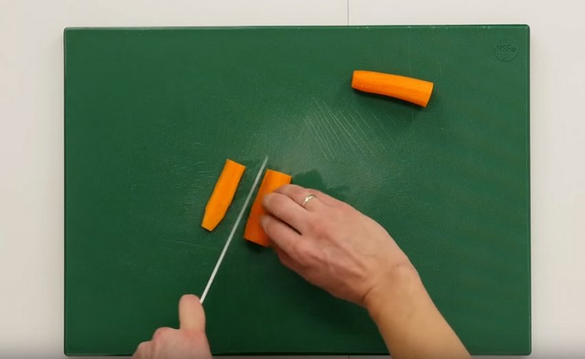 - Цукіні та моркву нашаткувати на довгі тонкі бруски, щоб вони вийшли однакового розміру.