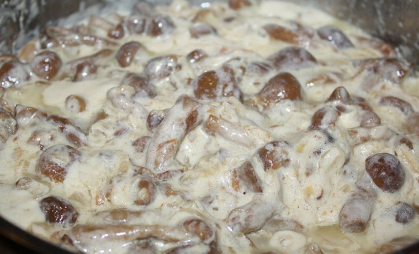 - Додайте в киплячу рідину оцет і сметану, після чого закип'ятіть усе ще 5 хвилин.