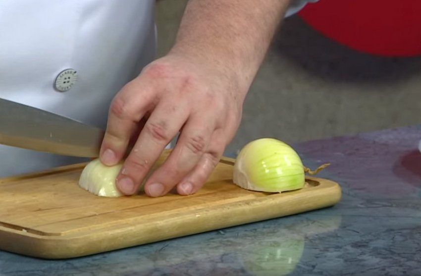 Цибулину настрогати півкільцями або кубиками.![]()