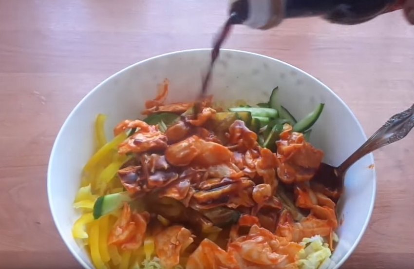 Заправити суміш соусом, добре перемішати.![]()