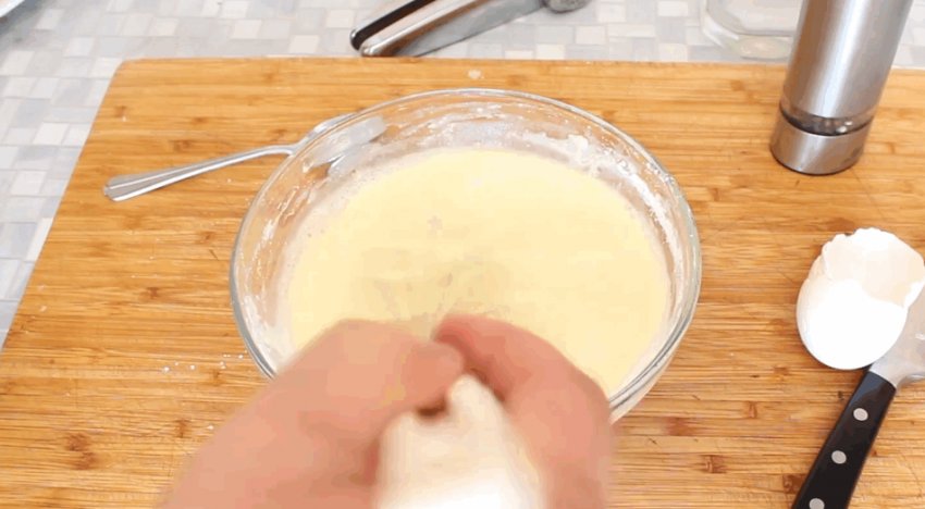 Змішайте яйця, борошно і молоко, щоб зробити кляр. Солити потрібно за смаком.![]()