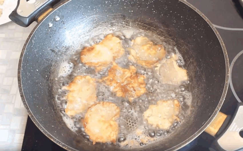 Занурте кожен грибний капелюшок у кляр і обсмажте на розігрітій сковороді.![]()
