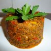 - Збийте суміш у блендері або подрібніть за допомогою м'ясорубки. Додайте помідорну пасту.