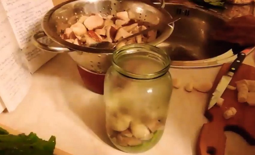 Після цього помістіть туди шар відварених грибів, рясно посоліть, додайте перець горошком. На одну літрову банку використовуйте 1,5 ст. л. солі з гіркою.![]()