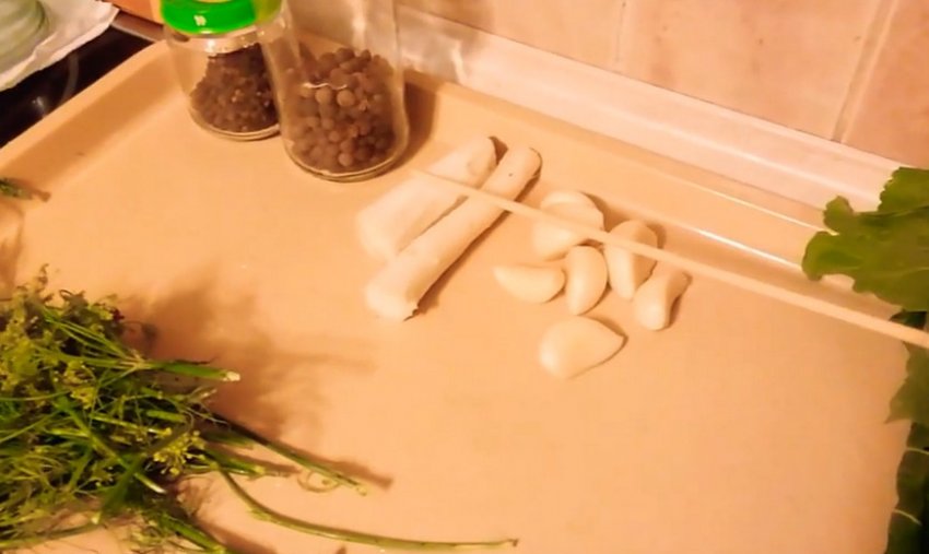 - Покладіть їх в емальований посуд, пересипавши сіллю і переклавши приправами.