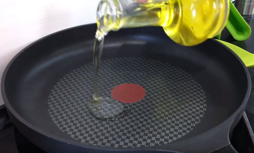 Розігріти сковорідку, налити 2 столові ложки рослинної олії.![]()