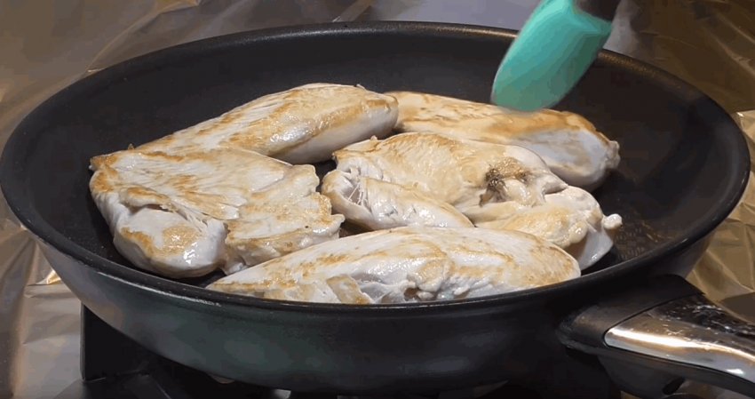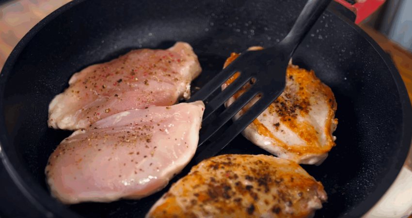 Помістіть на неї куряче філе і смажте з кожного боку по 3-5 хвилин.![]()