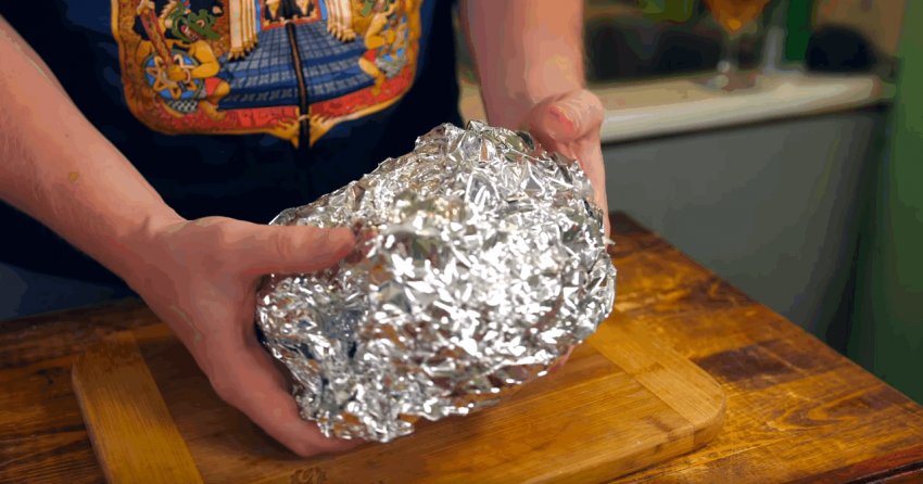 Помістіть м'ясо на фольгу та загорніть. Це дозволить зберегти оптимальну температуру та соковитість.![]()