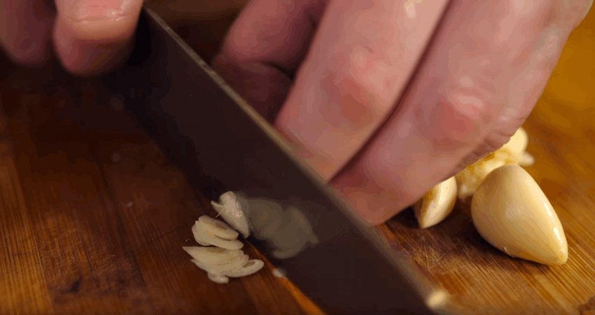 За допомогою ножа дрібно нарубайте часник.![]()