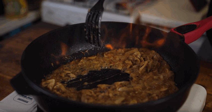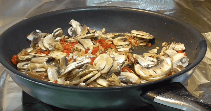 Смажити всі інгредієнти потрібно доти, доки не випарується вся волога з грибів.![]()
