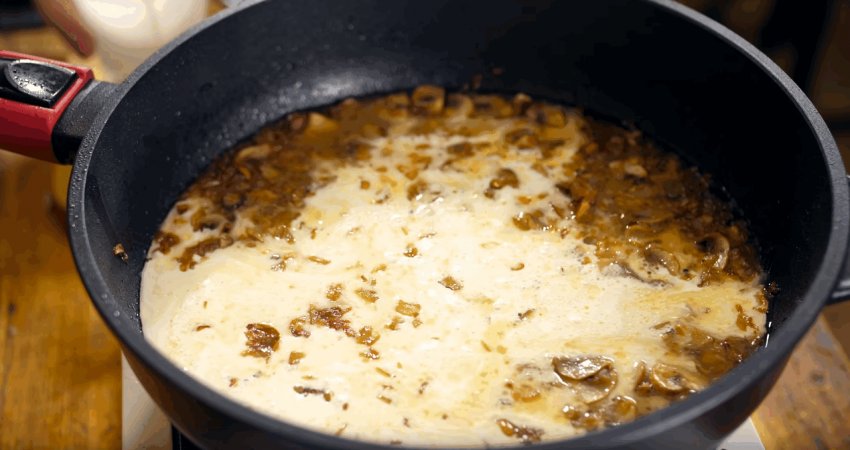З додаванням коньяку, сиру та бульйону в соус Видео-рецепт: З додаванням коньяку, сиру та бульйону в соус