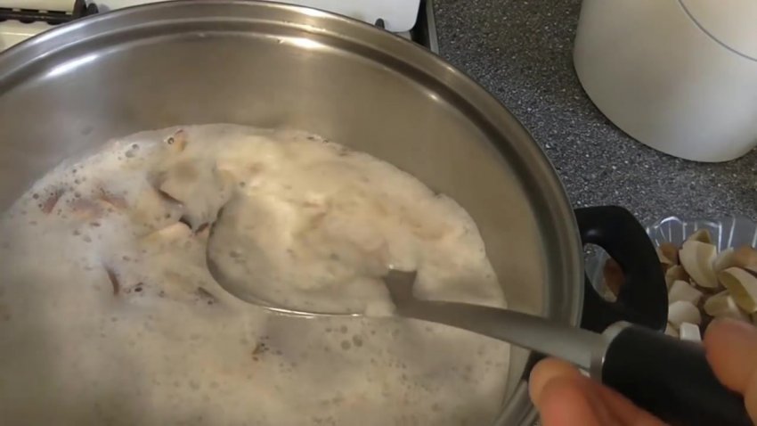 - Гриби залийте водою і поставте варитися протягом 10 хвилин.