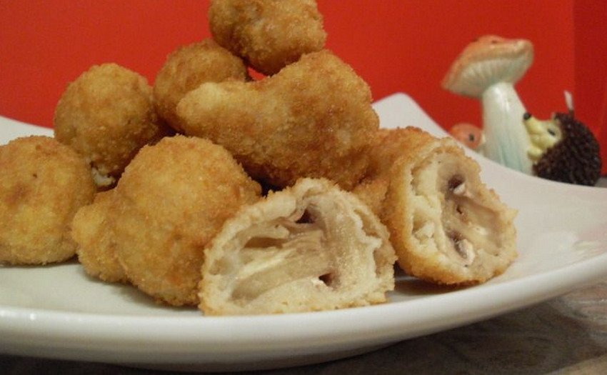 - Відрізані ніжки наріжте кільцями та тушкуйте на сковороді. З'єднайте із сирною масою.