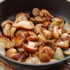 картоплю слід очистити й нарізати соломкою. Після цього додати до грибів.![]()