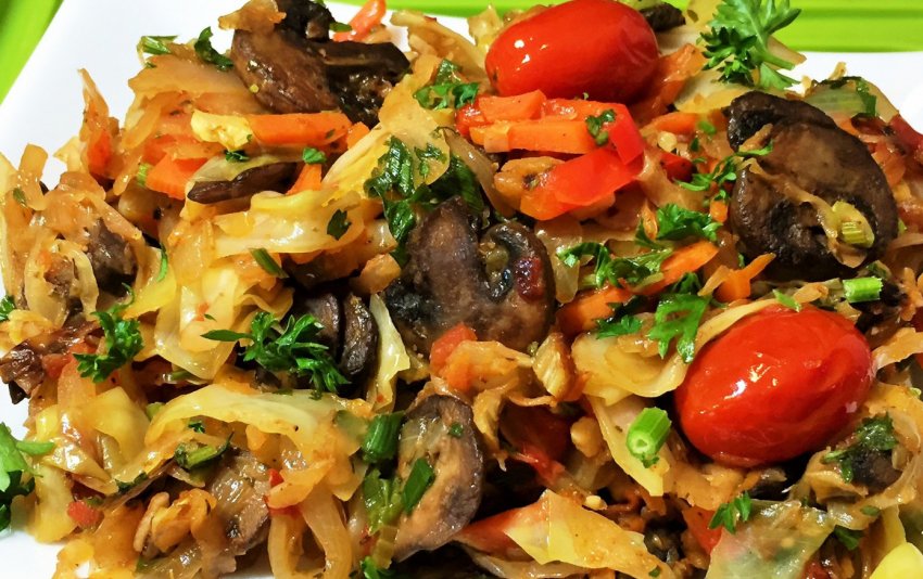 закритою кришкою тушкуйте 15 хвилин. У процесі готування намагайтеся помішувати всі інгредієнти, щоб не пригоріли. Посипте спеціями за смаком.![]()