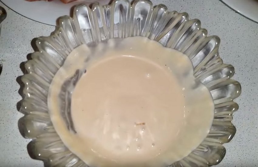 - Додати до копченого філе зажарку, сіль за смаком і майонез. Усе ретельно перемішати.