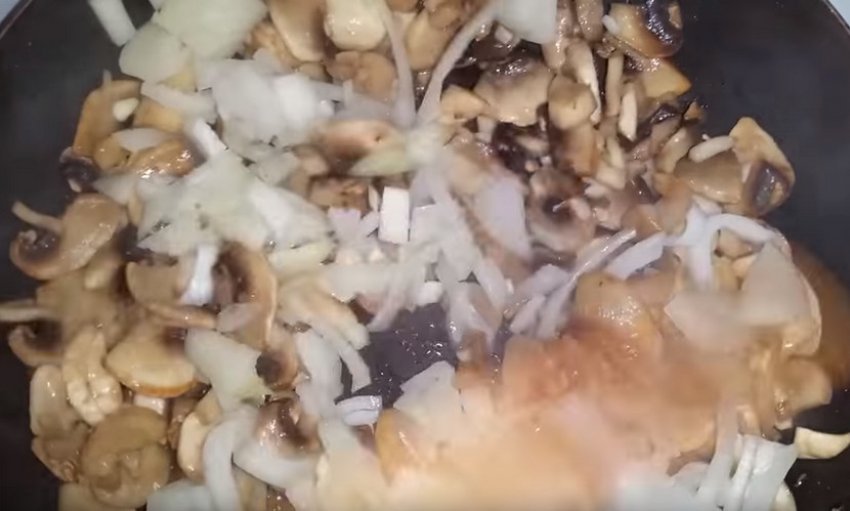 Зі смаженими грибами, цибулею та огіркамиВидео-рецепт: Зі смаженими грибами, цибулею та огірками