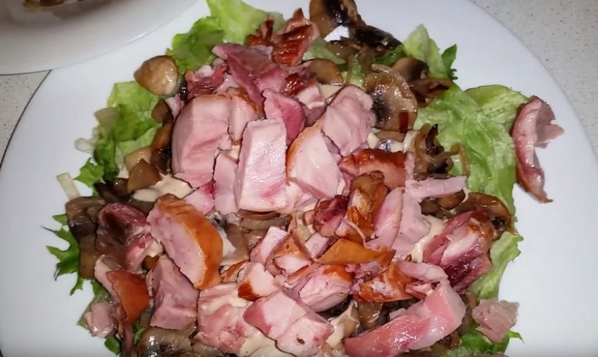 Рецепти приготування салату з копченою курячою грудкою та печерицями