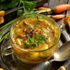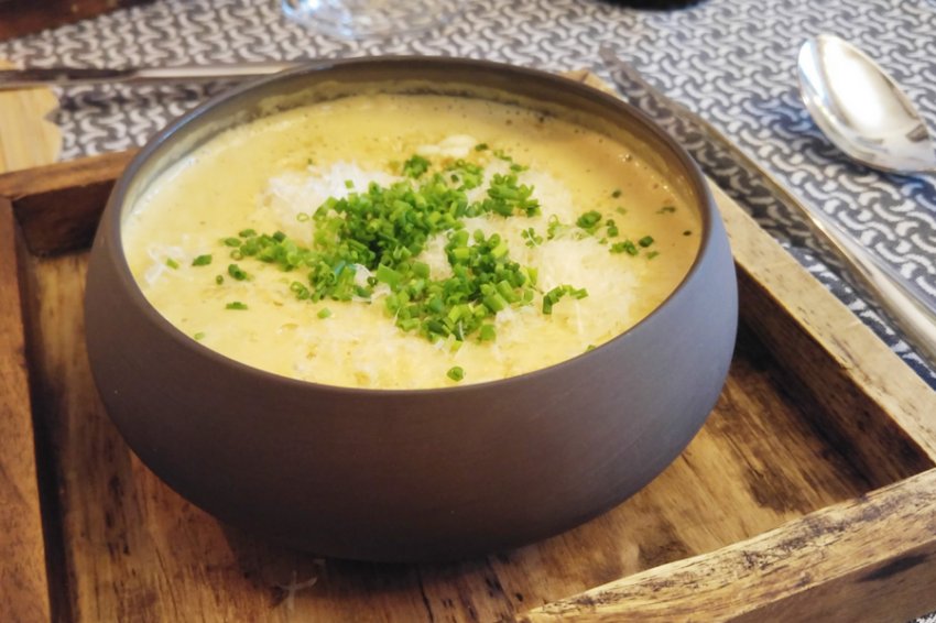 - З'єднайте пюре з гарячим бульйоном і ретельно все перемішайте. Посоліть і поперчіть суп за смаком.