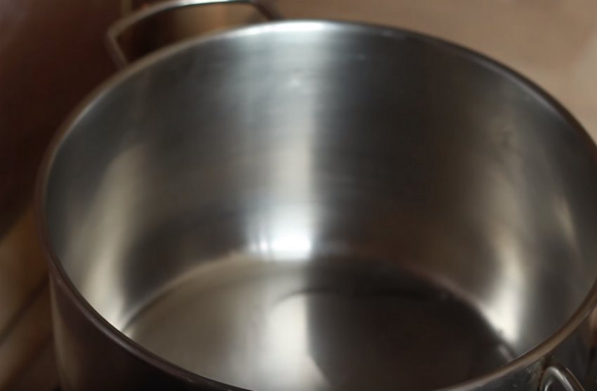 - Вилийте в глибоку каструлю воду, додайте половину столової ложки солі, лавровий лист і перець, а потім доведіть суміш до кипіння.